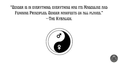 Men objectifying women is a display of a masculine expression of the feminine. Women competing for male attention are acting through a feminine expression of the masculine. Cancel culture? A cultural expression of feminine covert aggression. Rape culture, the masculine overt variety. Ultimately, any qualities associated as masculine are brought forth from Divine Neutrality, where all things spring from and expire to, the one thing, or center thing, or inexhaustible thing BY femininity.